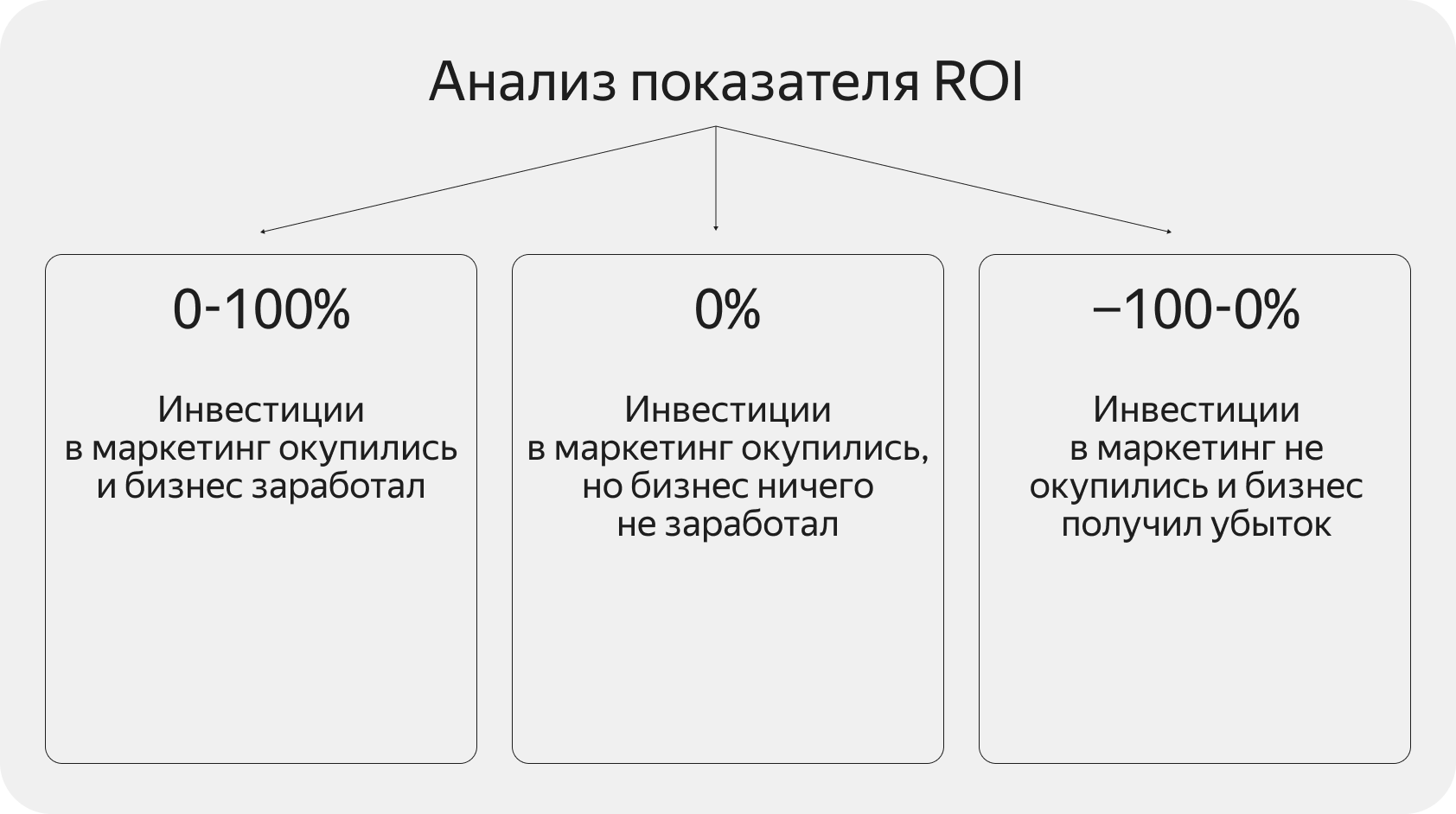 Результат расчёта коэффициента ROI может быть в трёх вариантах: