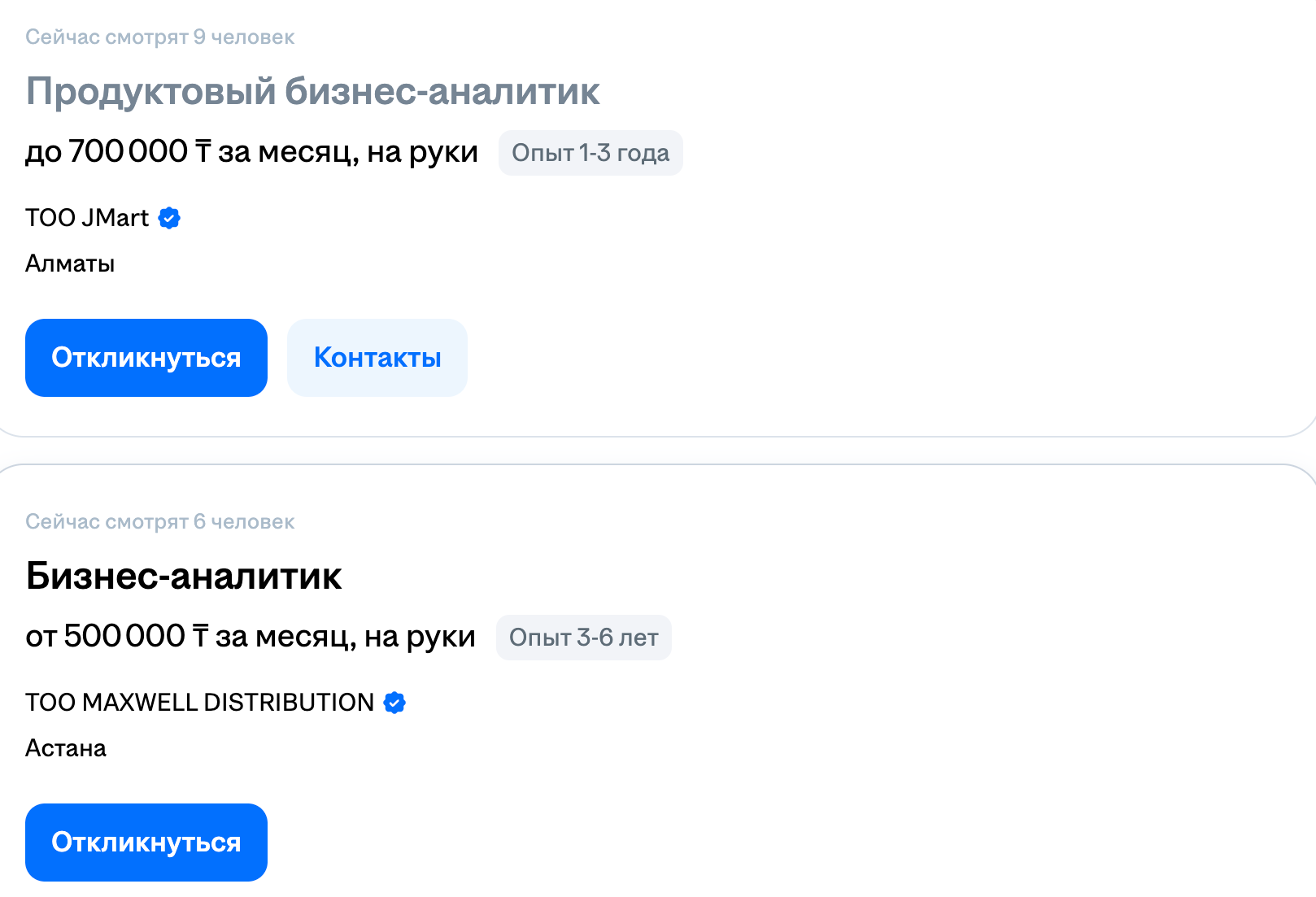 Data Analyst может получать больше, если развивается сразу в нескольких специальностях. Источник: hh.kz