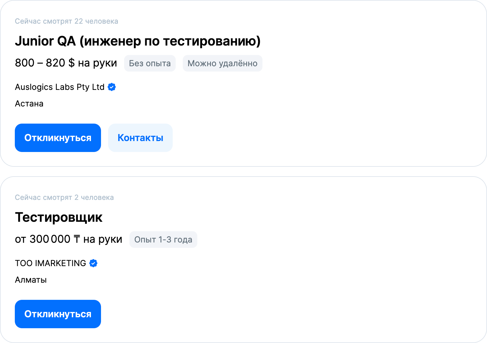 В среднем QA-инженеры в Казахстане зарабатывают в месяц около 185 тыс. тенге, или 380 долларов США. Однако на рынке есть вакансии и с более высокой зарплатой. Чтобы получать больше, кандидатам на позицию тестировщика нужно уметь писать техническую документацию. Кроме того, соискатель должен знать методологию тестирования и разработки, а также иметь навыки работы с баг-трекерами.